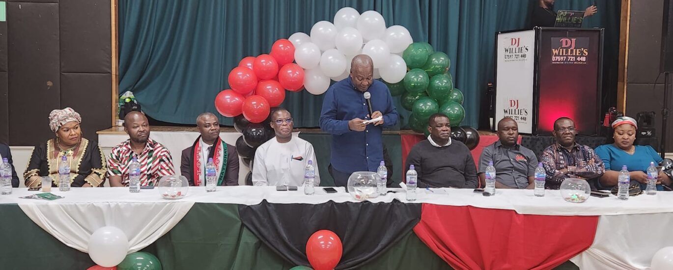 The National Democratic Congress (NDC) celebrated a significant milestone with the inauguration of its 20th branch in the United Kingdom and Ireland, a momentous event hosted in Aldershot. The occasion was graced by esteemed personalities, including former President H.E. John Dramani Mahama, whose unexpected appearance added an extra layer of excitement and joy to the gathering. The unanticipated visit elicited enthusiastic cheers and applause from members and guests alike, echoing throughout the venue with an energy that seemed to reverberate for miles. Fortunately, the sturdy architecture of the Georgian Gothic building ensured that the jubilant the atmosphere did not bring the roof down despite the thunderous reception H. E. John Mahama’s arrival.